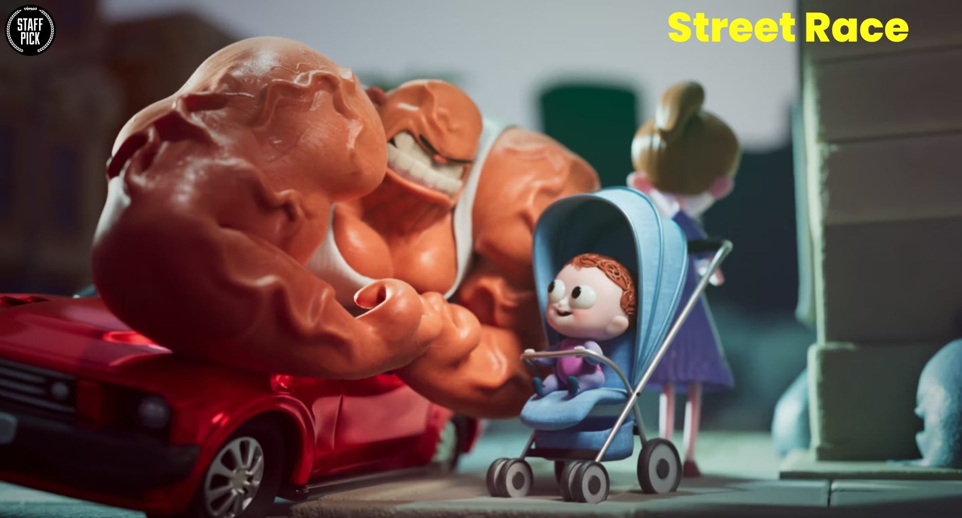 CR: I’m really proud of the new short Street Race made with Tumblehead. It’s an idea I’ve been thinking about for many years at this point and I’m really happy to finally make it come to fruition. I’m also really proud of the whole team on it, getting to work with Vernon Chatman who is a hero of mine and helped make the idea a lot better. And also getting to work with my insanely talented brother (Dan Rutledge) who helped direct and storyboard the project, as well as doing the voice of the scary muscle guy.