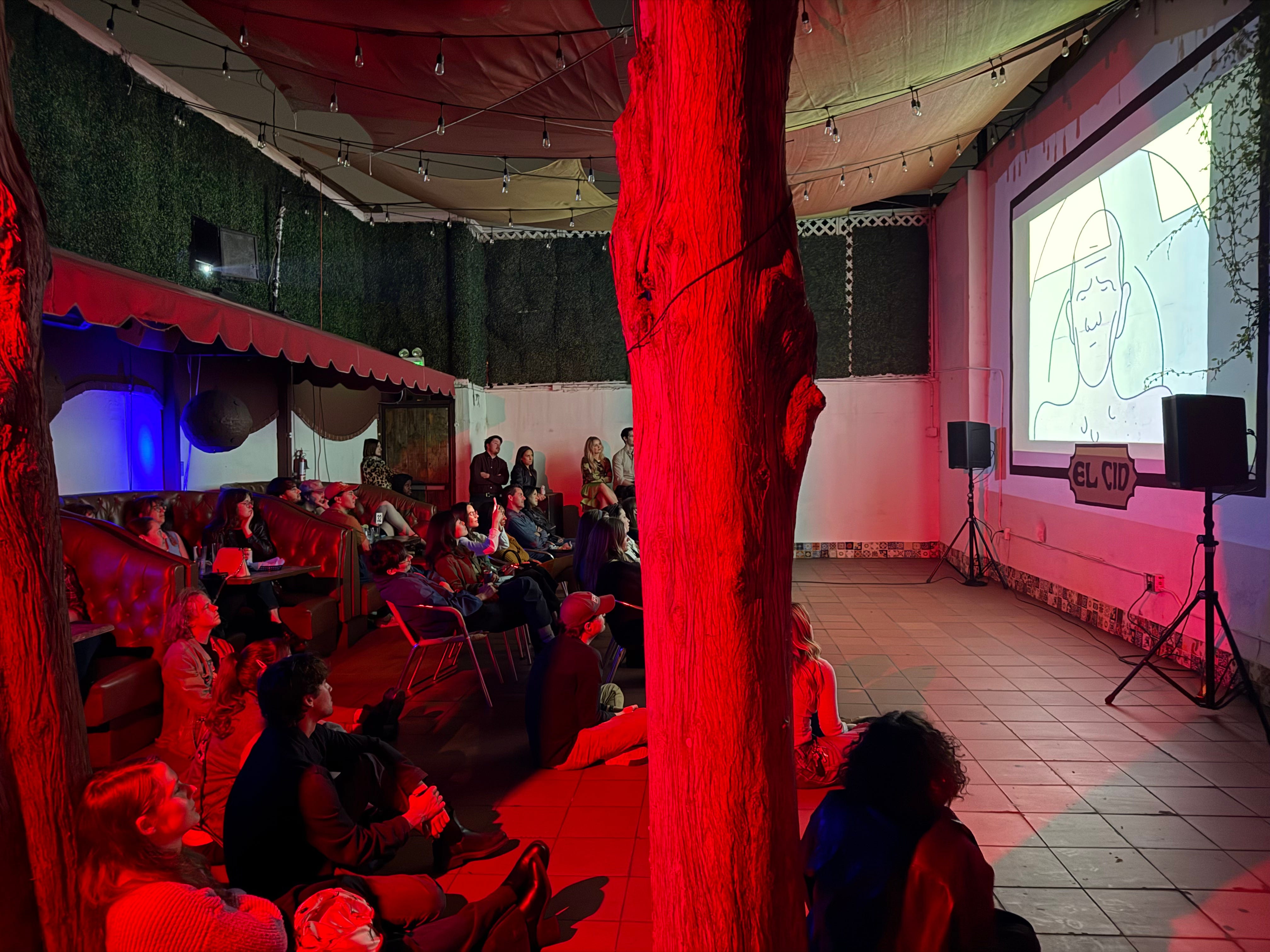 Over 150 people filed into El Cid on the night of Wednesday, February 25th and took their seats inside and outside on the patio. The screening started at 8pm with an introduction from Jared Corwin (Co-Executive Director of SLS) and Benoit Berthe Siward (CEO of The Animation Showcase).